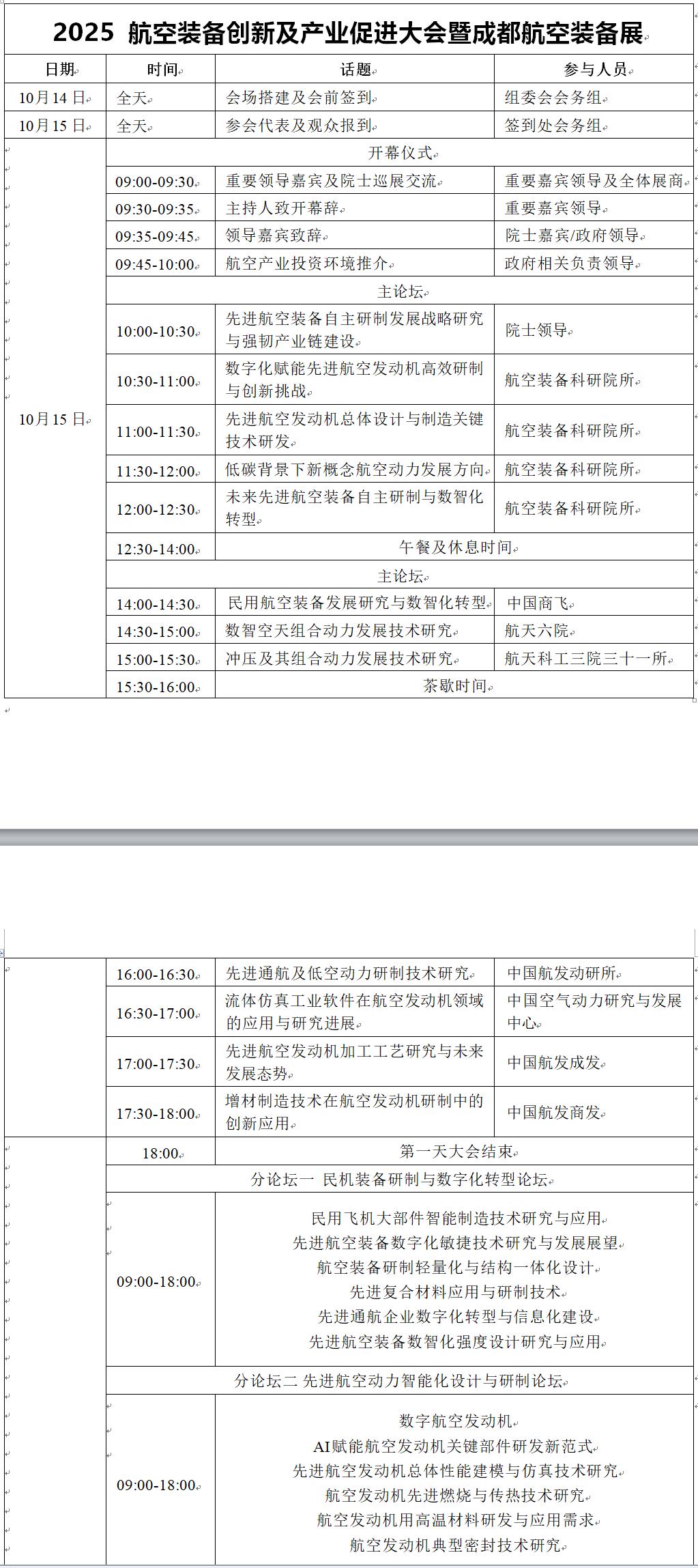 (二)本次大會以“會議+展覽”的形式舉行,設置航 空裝備先進創(chuàng)新技術成果展示區(qū)。本次會議規(guī)模約為2000 人,專業(yè)觀眾約為10000人,展區(qū)面積約為11500㎡,分別 設置整機裝備展區(qū)、航空動力先進制造展區(qū)、先進材料展區(qū)、 中小型航空動力展區(qū)、智能化試驗檢測展區(qū)等六大核心成果 展示區(qū),特設一個高校創(chuàng)新技術成果墻報展區(qū),邀請來自航 空裝備整機單位、高校院所、航空裝備產業(yè)鏈上下游供應商 等單位出席做展覽展示和技術交流。旨在搭建政產學研用深 度融合的交流合作平臺,全面展示我國航空裝備領域在整機 研制、關鍵技術攻關、制造工藝提升、智能化轉型等方面的最新成果。