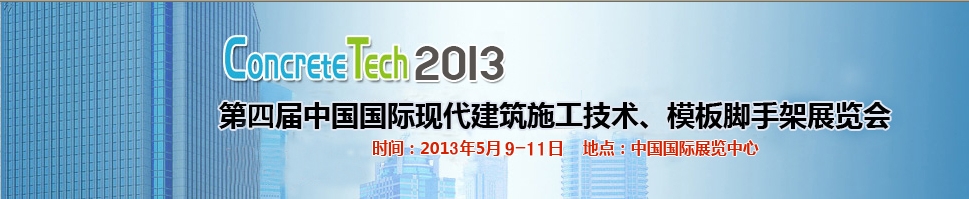2013年第四屆中國j國際建筑模板、腳手架及施工技術展覽會(Concretetech)是由國家發(fā)改委、國家住房和城鄉(xiāng)建設部、中國建筑金屬結構協(xié)會、中國建筑材料聯(lián)合會支持的建筑建材裝備及技術的專業(yè)展會。