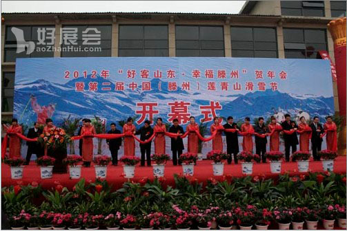 “2012年“好客山東·幸福滕州”賀年會(huì)暨第二屆中國(滕州)蓮青山滑雪節(jié)”,12月30日在在蓮青山滑雪度假中心盛大開幕。山東省服務(wù)業(yè)辦公室副主任陳清華、項(xiàng)目處巡視員李世志,省旅游局政策法規(guī)處處長(zhǎng)王明波,棗莊市旅游和服務(wù)業(yè)發(fā)展委員會(huì)副主任董葉莖,滕州市委副書記李健,滕州市委常委、市政府副市長(zhǎng)顏景焱,滕州市政府副市長(zhǎng)張憲依,滕州市旅游和服務(wù)業(yè)發(fā)展局局長(zhǎng)、市節(jié)會(huì)辦主任鐘向榮,東郭鎮(zhèn)黨委書記楊修常等出席了開幕式。