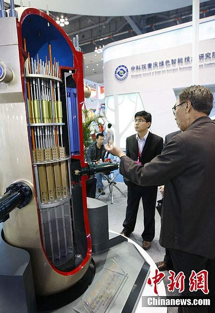 4月12日,第十屆中國重慶高新技術交易會暨第六屆中國國際軍民兩用技術博覽會在渝開幕。此次展會匯聚國內外各領域的高、精、尖技術成果35000余項,將向市場推介1507項最新軍民兩用技術成果。來自美德等35個國家和地區(qū)的180個代表團、2100個企業(yè)參展。圖為1:5比例的多用途模塊式小型核反應堆模型。(來源:中新網)