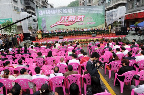 5月1日,首屆貴州青觀賞石全國博覽會(huì)在天柱縣隆重開幕。共展出貴州青4000余方,廣西柳州石、遼寧岫玉、新疆和田玉、云南黃龍玉、山東觀賞石等9省市,20多種奇石。