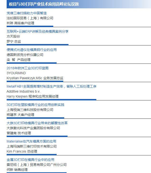 3D打印高峰論壇,由行業(yè)領(lǐng)先企業(yè)和研究機(jī)構(gòu)主講,揭示增材制造行業(yè)的應(yīng)用、發(fā)展產(chǎn)品和研究成果。不同題目匯聚環(huán)球行業(yè)智慧,擴(kuò)闊業(yè)者眼界,豐富與會(huì)者的參觀體驗(yàn)。論壇題目排題搶先看: