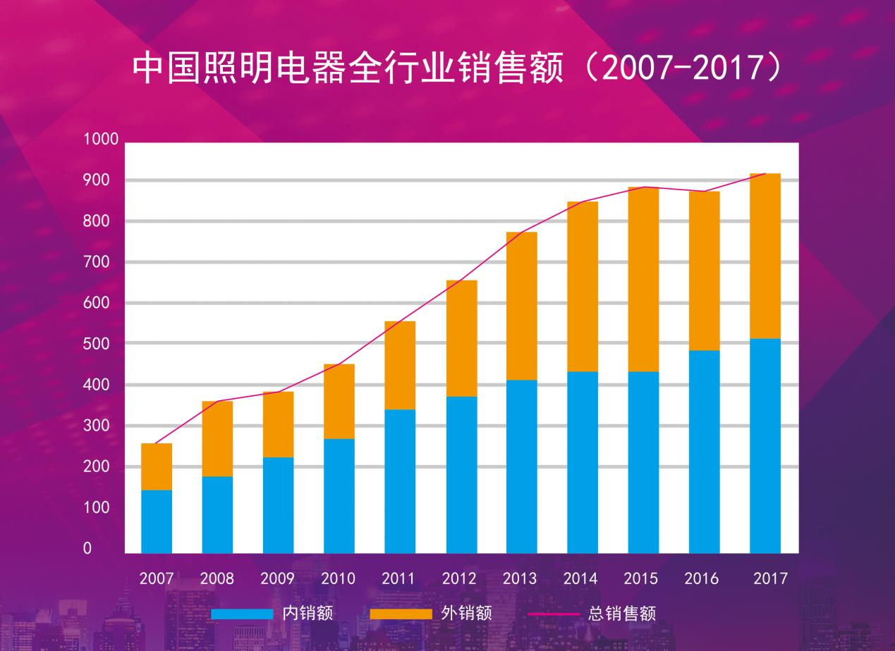 近年來(lái),我國(guó)照明行業(yè)的發(fā)展堪稱(chēng)神速。以去年為例,2017年我國(guó)照明電器行業(yè)整體銷(xiāo)售額約為5800億人民幣,比2016年的5600億人民幣增長(zhǎng)約3.6%。外銷(xiāo)也從2016年的388億增長(zhǎng)至412億美元。
