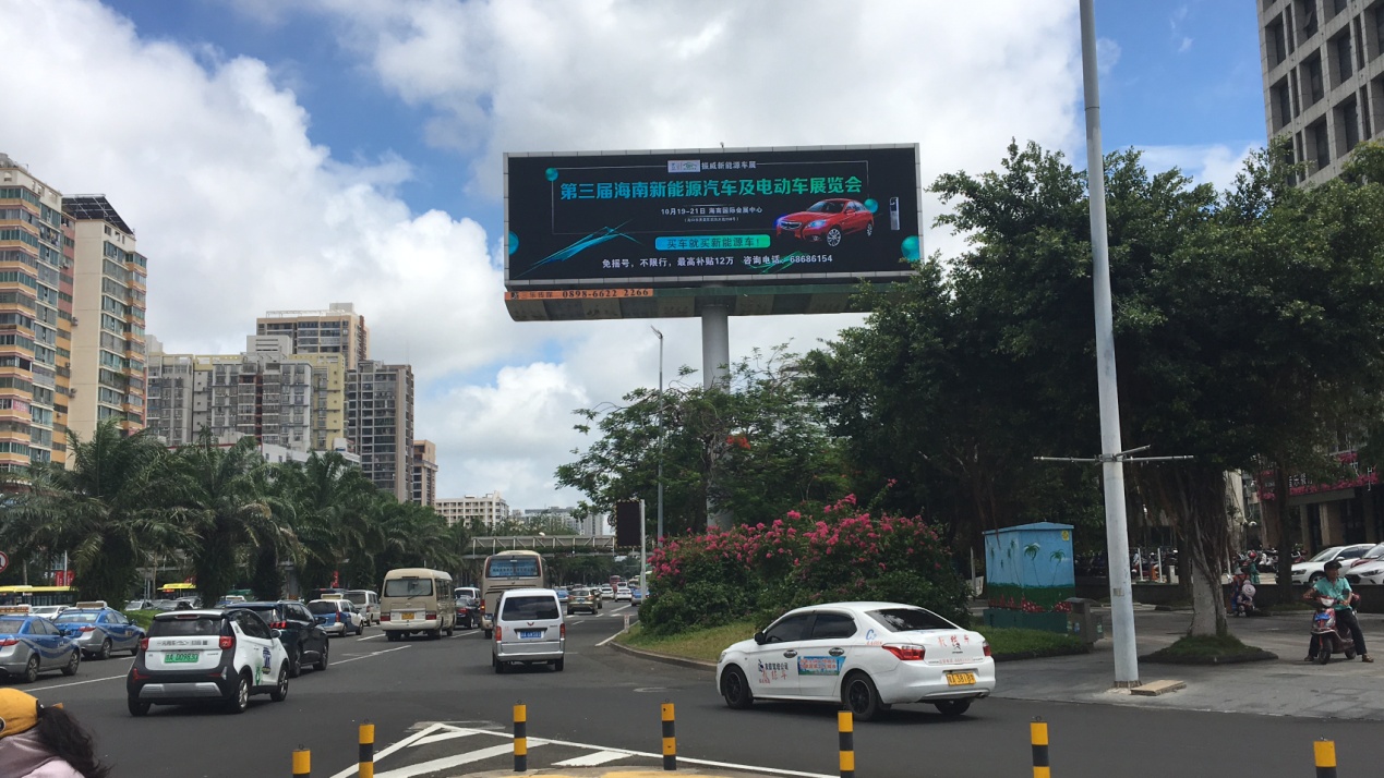 ??谑旋埨ツ下放_(tái)灣大廈前的第三屆海南新能源車展LED廣告
