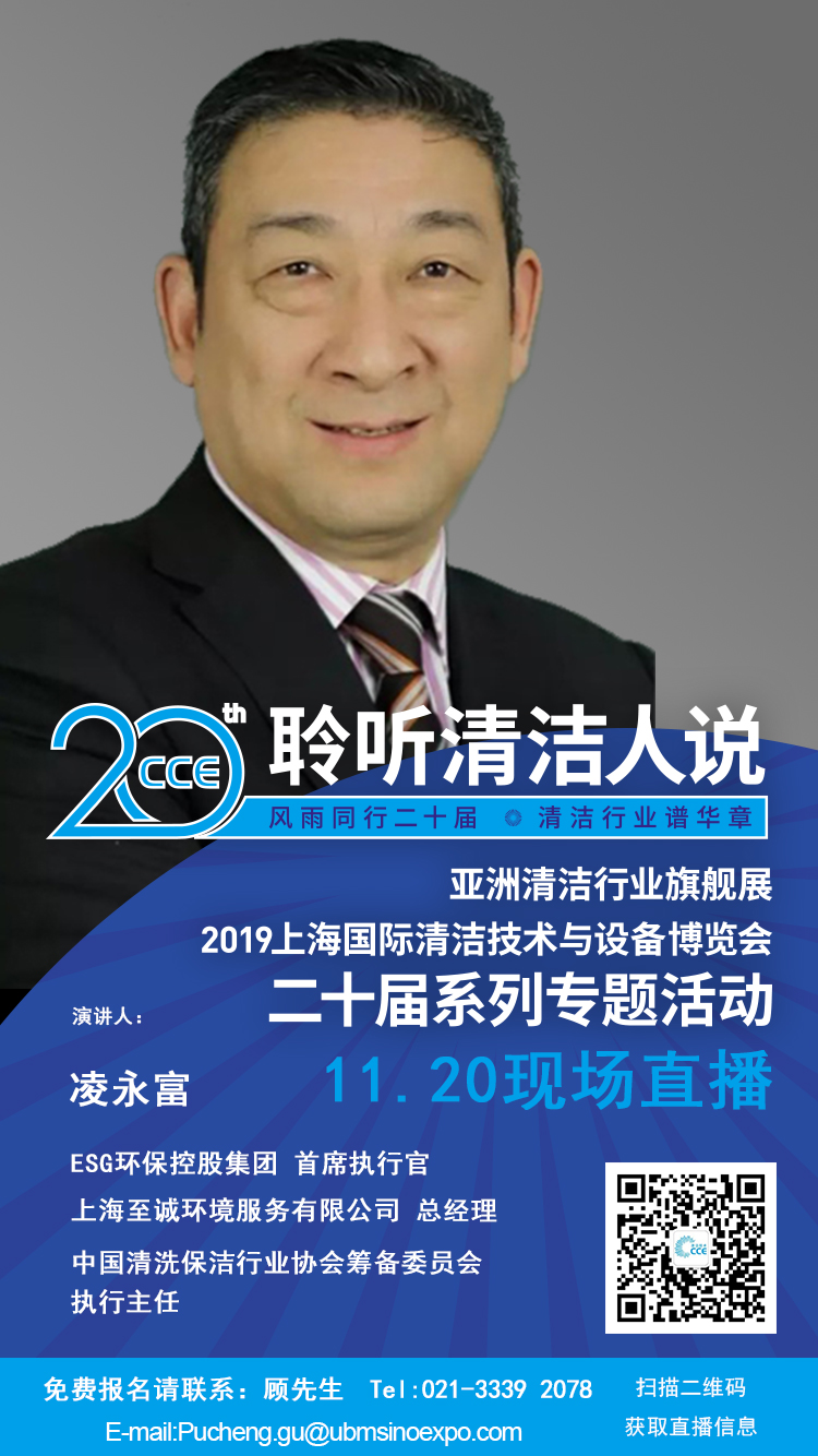 11月20日,“清潔人說”直播間即將迎來第一位嘉賓:凌永富先生。作為ESG環(huán)??毓杉瘓F首席執(zhí)行官、上海至誠環(huán)境服務有限公司總經(jīng)理、中國清洗保潔行業(yè)協(xié)會籌備委員會執(zhí)行主任,凌總深耕行業(yè)40余年,見證行業(yè)不斷變化,率領企業(yè)與協(xié)會取得飛躍式的進步。