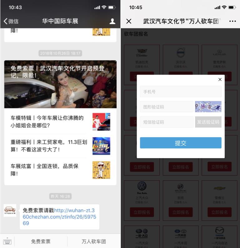 ①進入“華中國際車展”官方微信,點擊菜單“萬人砍車團”,選擇自己的意向品牌并報名參與活動。(注意:一個人僅能參與一個品牌的砍車團活動,請慎重選擇?。?br />