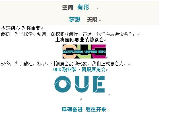 OUE上海國(guó)際職業(yè)裝博覽會(huì)更名:OUE職業(yè)裝·團(tuán)服展覽會(huì)