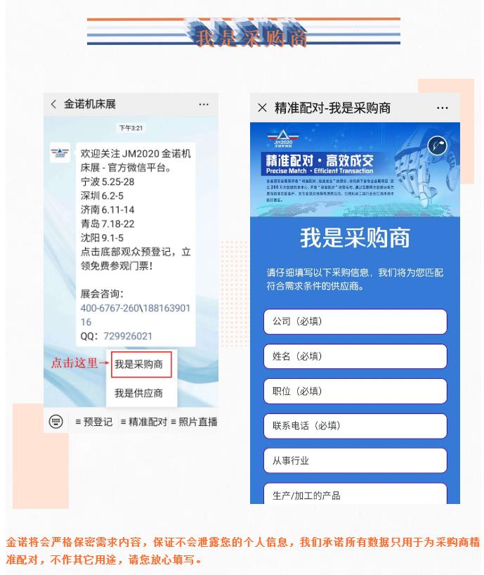 考慮到突發(fā)的疫情可能為您的觀展或采購(gòu)造成不便,為了給您帶來(lái)最舒適的采購(gòu)體驗(yàn),節(jié)省您的采購(gòu)時(shí)間,找到更適合的產(chǎn)品,金諾機(jī)床展托旗下各專業(yè)會(huì)展項(xiàng)目,建立200萬(wàn)大數(shù)據(jù)共享中心,開(kāi)發(fā)“精準(zhǔn)配對(duì)”供需專欄,通過(guò)互聯(lián)網(wǎng)大數(shù)據(jù)分析為展商精準(zhǔn)匹配客戶,為專業(yè)觀眾推薦優(yōu)質(zhì)供應(yīng)商,引領(lǐng)機(jī)床工具行業(yè)在紅海市場(chǎng)中航行更遠(yuǎn)。