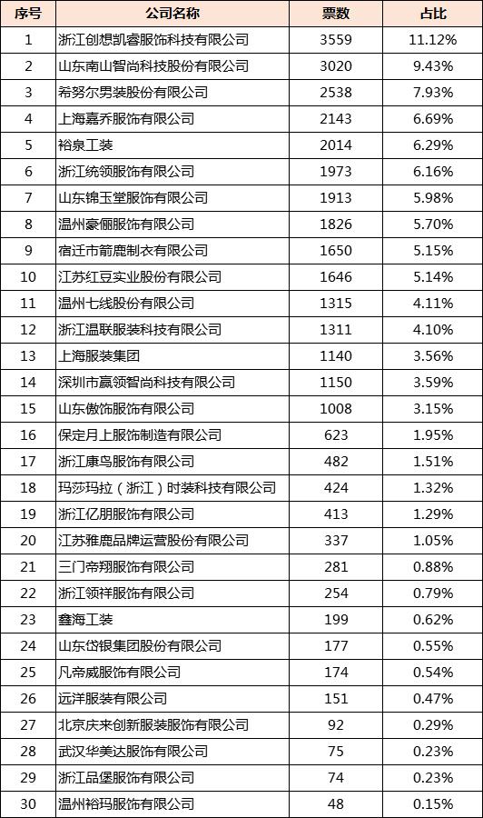 活動(dòng)自舉辦以來,得到了許多職業(yè)裝企業(yè)的熱烈反響,報(bào)名者絡(luò)繹不絕。5月28日至6月28日,網(wǎng)絡(luò)投票,網(wǎng)絡(luò)投票評(píng)分占總分值10%,現(xiàn)公布網(wǎng)絡(luò)投票結(jié)果: