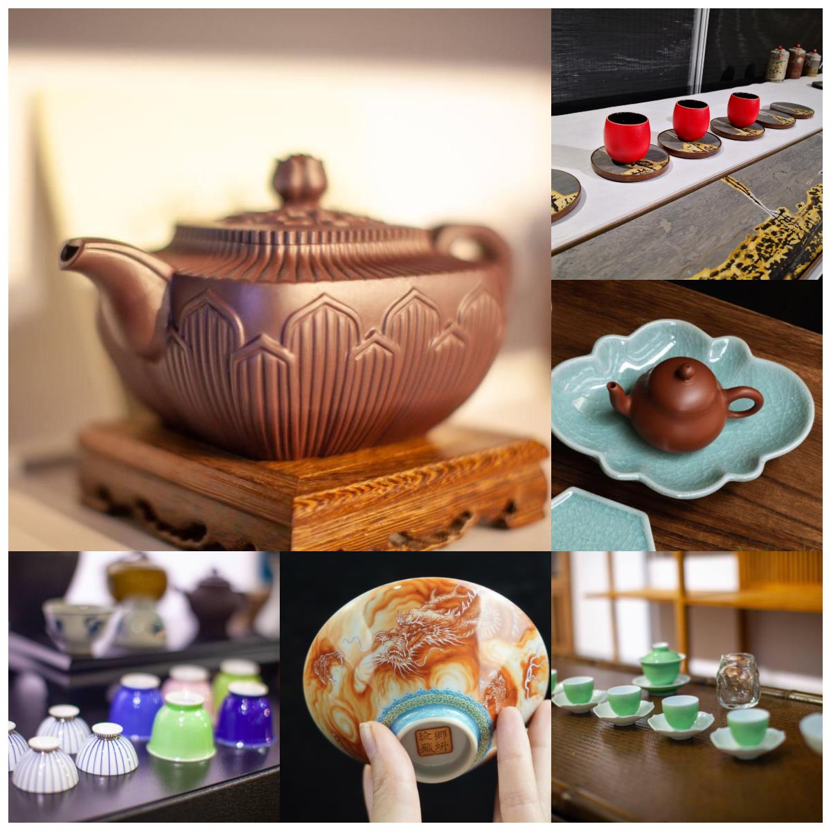 好茶配好器,以馮建群、張?zhí)?、?yīng)惠芳等為代表的紫砂藝人攜作品亮相,更有欽州坭興陶、建水紫陶、銀壺、建盞、鈞瓷、竹器等高端茶器悉數(shù)亮相;